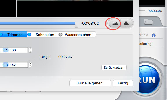 Tips: Einige Benutzer haben vielleicht auf das folgende Problem getroffen: "Wenn ich ein Video auf das Programm lade, das ich konvertieren möchten, wird es umgedreht dargestellt. Aber wenn ich dieses Video mit Quicktime Player abspielen, spielt es sich richtig ab. Was ist denn los hier? Wie kann ich es beheben? "