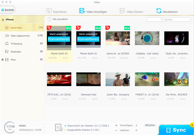 Schritt 3: Zum Schluss mit einem Klick auf den Button "Sync" lassen sich Ihre eigene oder geschützte DVD auf iPad kopieren ohne iTunes unter Mac/Windows in wenigen Minuten.